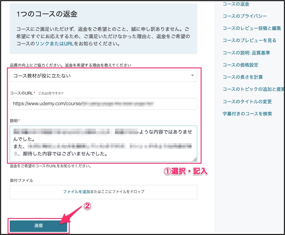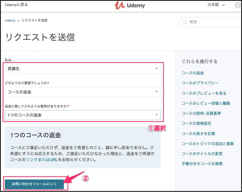 - 返金手続きは全てネットから完結。Udemy側の対応もとても迅速。